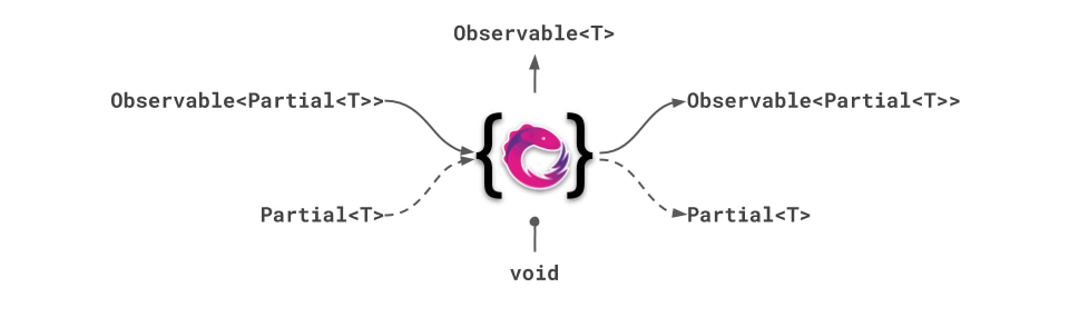 Connect an Observable<Partial<T>> to the state T.